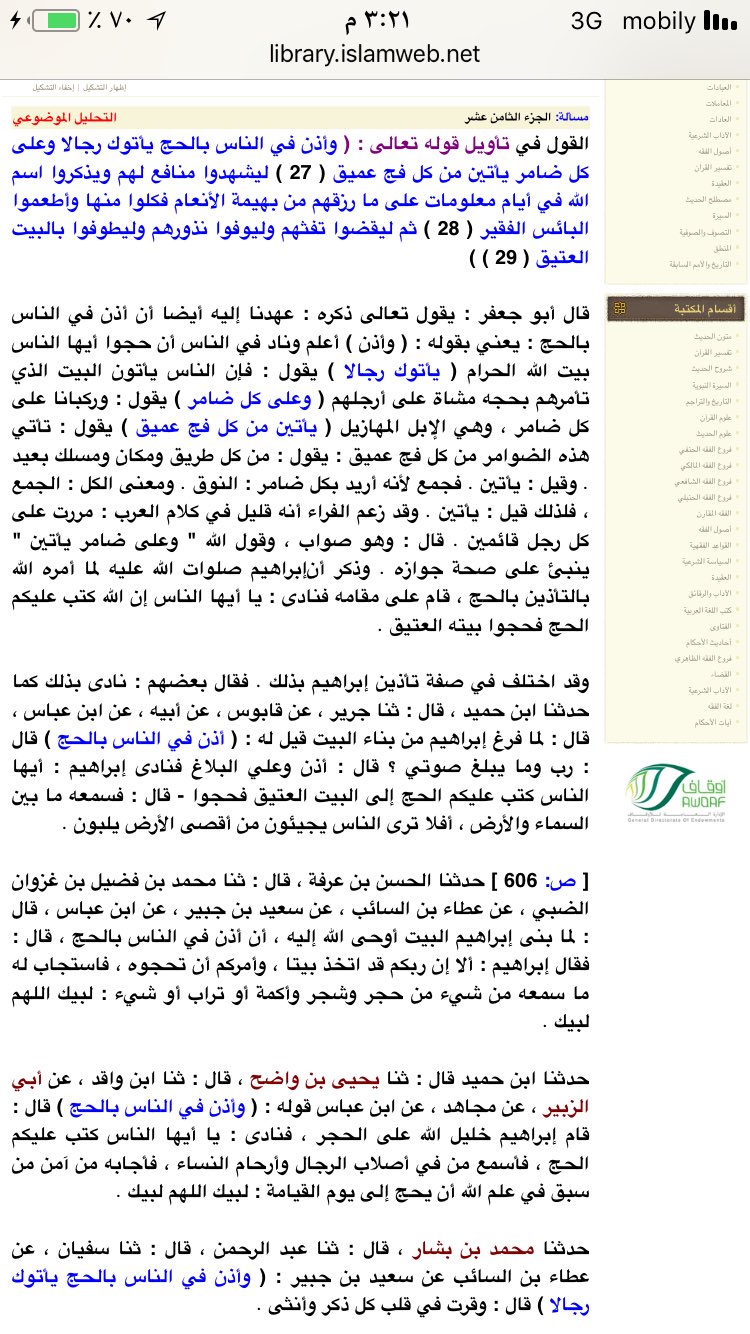 منبر قبيلة سبيع ابن عامر الغلباء العلمي Twitterren وأذن في الناس بالحج يأتوك رجالا وعلى كل ضامر يأتين من كل فج عميق ليشهدوا منافع لهم ويذكروا اسم الله في أيام معلومات على