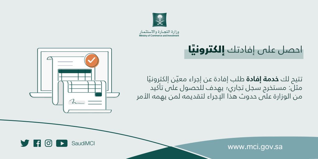 وزارة التجارة On Twitter تتيح لك خدمة إفادة بطلب إفادة عن إجراء معي ن إلكترونيا احصل عليها الآن عبر Https T Co Gajjpesu6d